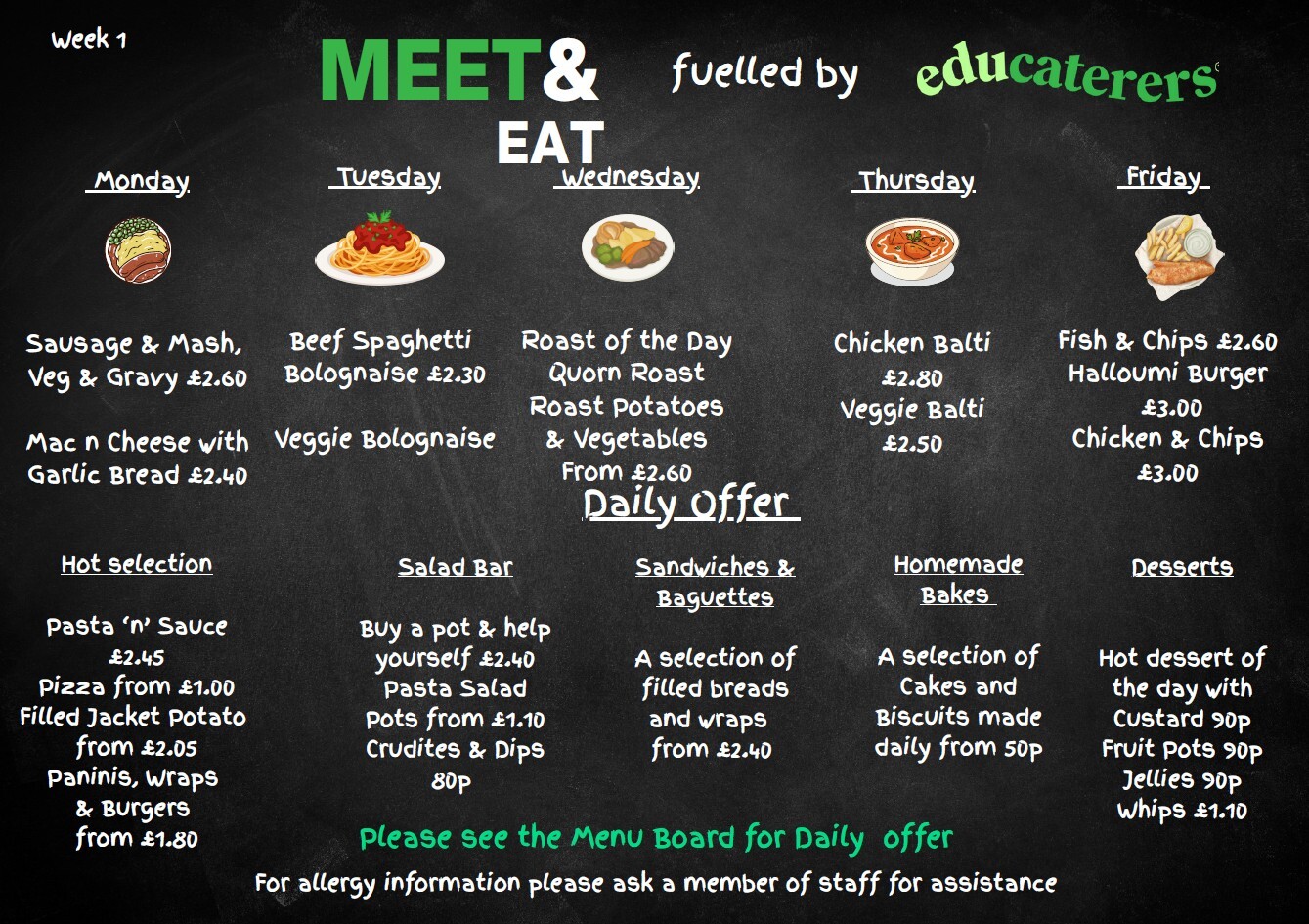 Our Refectory, fuelled by Educaterers, is designed to offer a range of healthy, nutritious foods and drinks at break and lunchtime